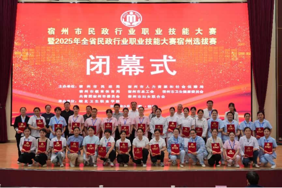 经过一天的激烈角逐,养老护理员赛项康养职工组和医养职工组一等奖获得者分别是孙可和任梦璇,另有6人获得二等奖、8人获得三等奖、7人获得优胜奖;孤残儿童护理员赛项一等奖获得者丁晶晶,另有2人获得二等奖、三人获得三等奖、3人获得优胜奖。组织奖一等奖由埇桥区民政局获得,另有2家单位获得二等奖、2家单位获得三等奖、1家单位获得优秀组织奖。